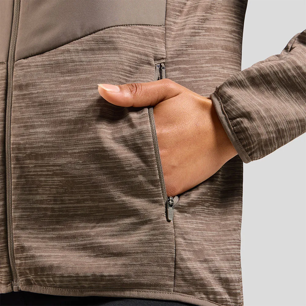 Jackan är tillverkad av en blandning av lättviktig, återvunnen G-Loft-termisk isolering med en mjuk, varm och andningsbar bikakefleece inuti.