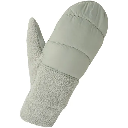 Borstad teddyfleece för värme och komfort kombinerat med en vindtät, isolerad och packbar vante för extra skydd.