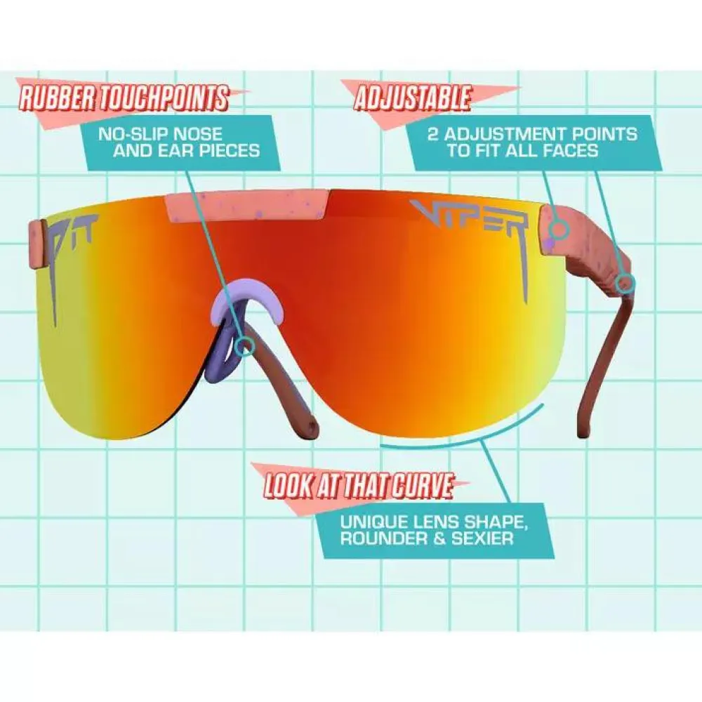 PIT VIPER Slammin´ Elliptical Sunglasses Pink är ett stilfullt och äventyrligt par goggles och solglasögon som är perfekta för dem som älskar utomhusaktiviteter och extrema sporter. Dessa solglasögon har en unik elliptisk form som ger ett modernt och edgy utseende.
