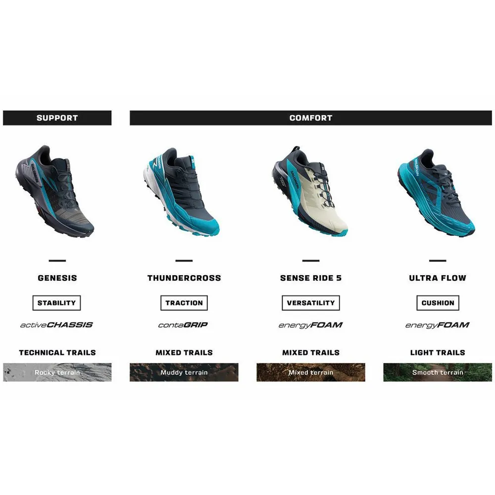 Upplev exceptionell komfort och hållbarhet med Salomon Genesis trailrunningsko. Dess spektakulära grepp ger stabilitet och självförtroende på teknisk, stenig eller lerig terräng. Den säkra, halkfria passformen är perfekt för snabba nedförsbackar. Med utmärkt dämpning och högkvalitativ konstruktion är denna mångsidiga sko idealisk för alla distanser, inklusive långa ultralopp. En slitstark, allsidig sko som levererar topprestanda och en säker, bekväm passform direkt ur kartongen