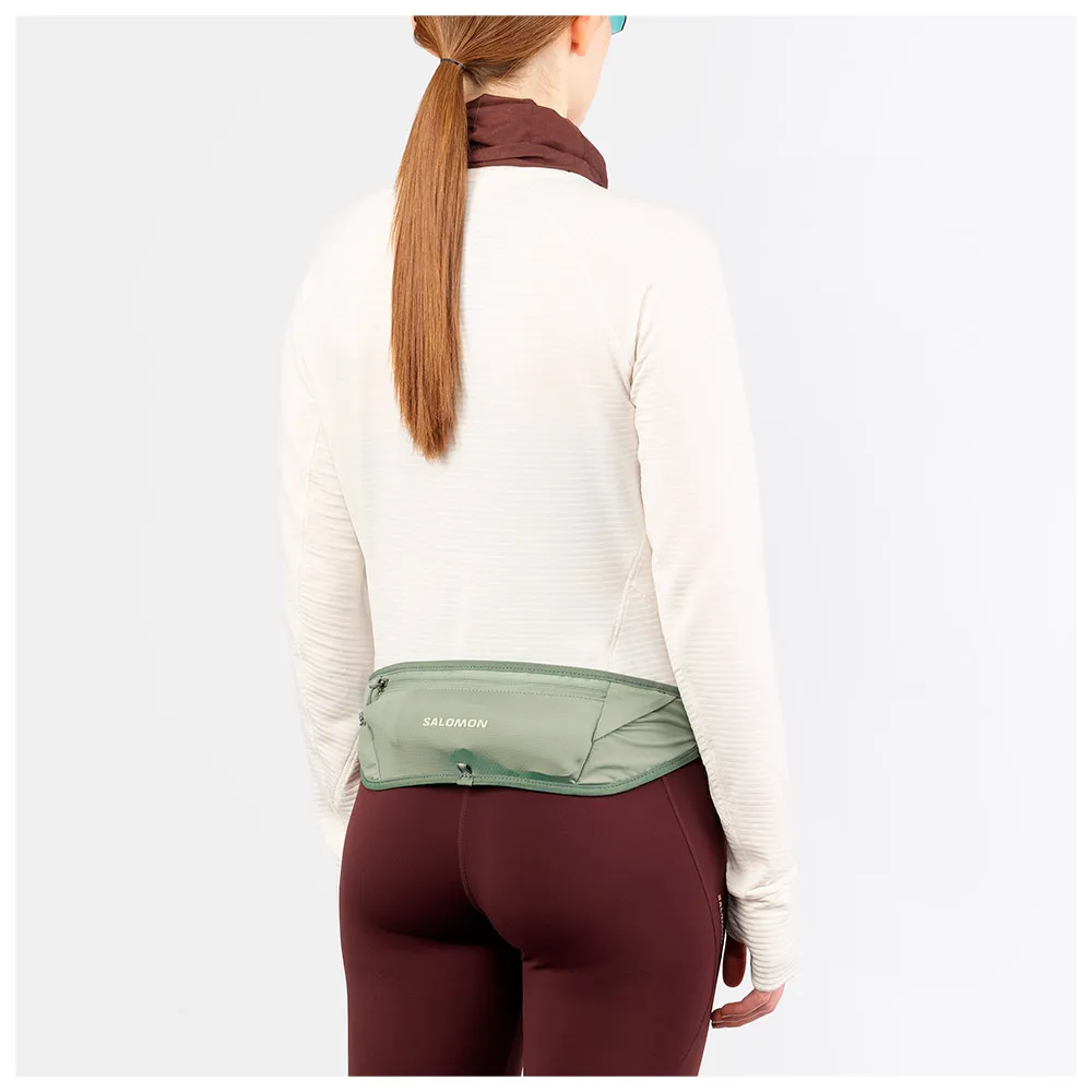Upplev ultimat frihet på stigen eller under resor med SALOMON Pulse Hydration midjeväska. Detta mjuka, minimalistiska bälte är nu lättare och mer hållbart, och erbjuder en åtsittande, studsfri passform tack vare dess 4-vägs stretchtyg och spännfria tubformade design. Förvara dina nödvändigheter smart i hemliga fickor och bär två 500 ml flaskor i horisontella stretchfickor. Mångsidiga diagonala remmar håller en jacka eller stavar, så att du kan fokusera på ditt äventyr, inte din utrustning. Idealisk för allt från stadslöpning till tekniska stigar
