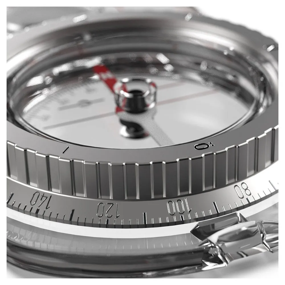 Kompass Typ 1933 är en traditionell basplattkompass inspirerad av de klassiska Silva-kompasserna från 1930-, 1940- och 1950-talen. Den har moderna funktioner som en global kompassnål, en inbyggd förstoringslins och en greppvänlig kompassring i hållbar CNC-aluminium.