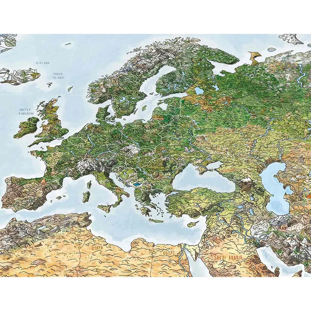 Håndillustreret med øje for detaljer og trykt i Tyskland ved hjælp af offsettryk på 100 % syrefrit 250 g/m² kunstpapir. Den leveres med et dekorativt cylinderformet plakatrør.