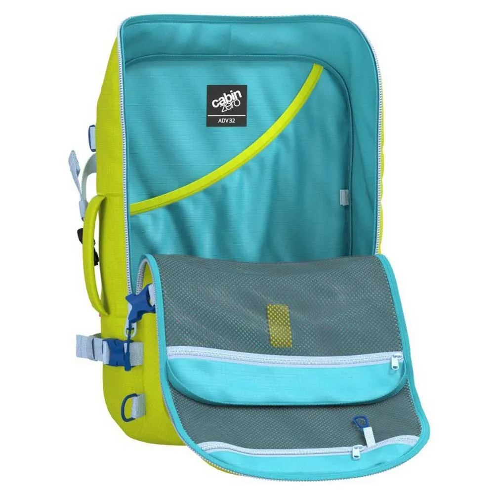 Den kombinerer alle de kendte CabinZero-taskefunktioner, herunder en lynlåslomme med hurtig adgang, et hovedrum, der kan læsses fra toppen eller fronten, en vandflaskeholder og en gemt taljebælte og skulderstropper.