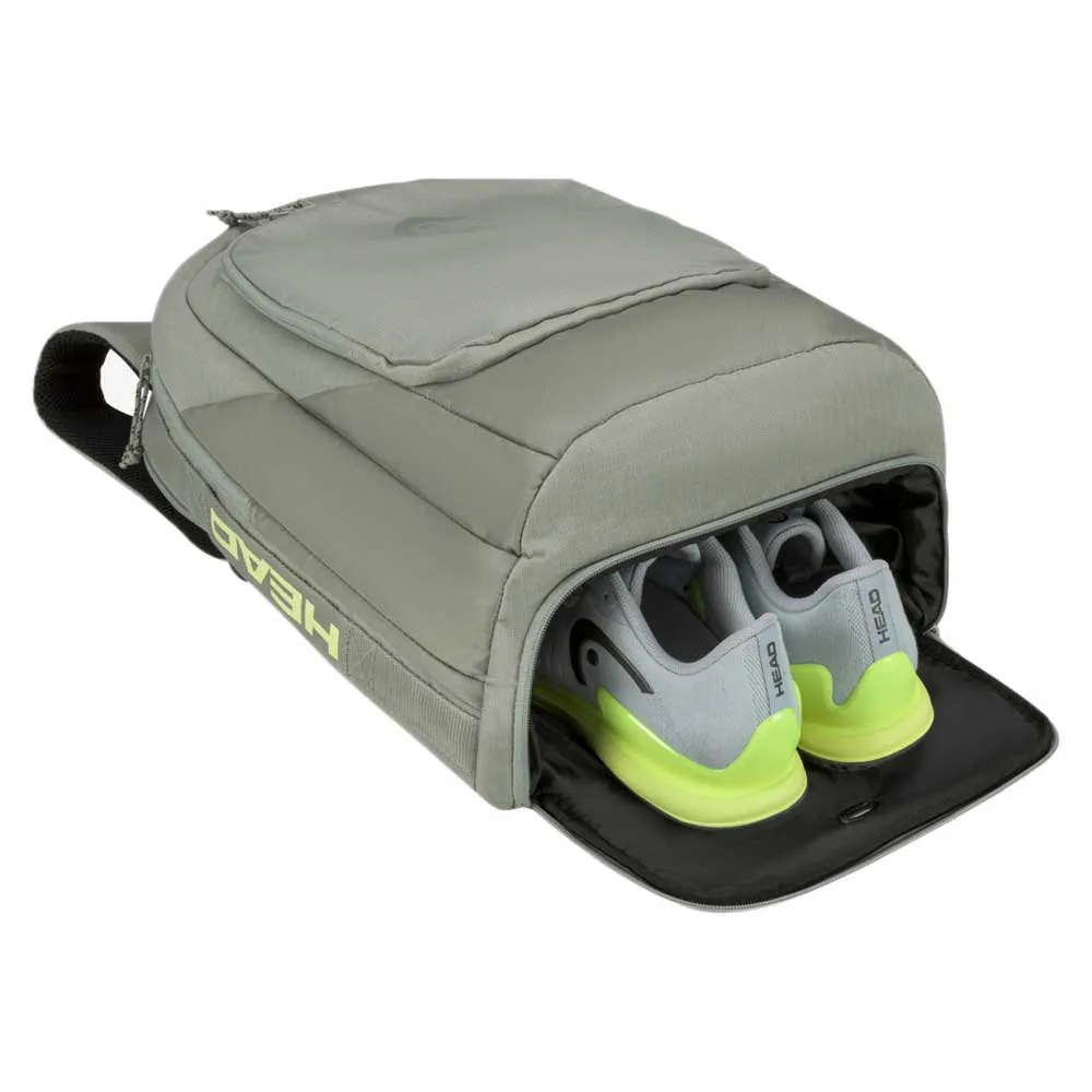 Du kan nemt organisere dine ejendele med rygsækken, som har plads til én ketsjer. Takket være den brede åbning har du meget nem adgang til hovedrummet samt til de ekstra mindre tilbehørslommer, mens der også er et integreret skorum og en justerbar flaskelomme. PRO BACKPACK 30L LNLL er en illustration af, hvordan HEAD anerkender sit ansvar for at være mere bæredygtig og hjælpe med at beskytte planeten, med hængemærket lavet af genbrugspapir og bundet med hampesnor.