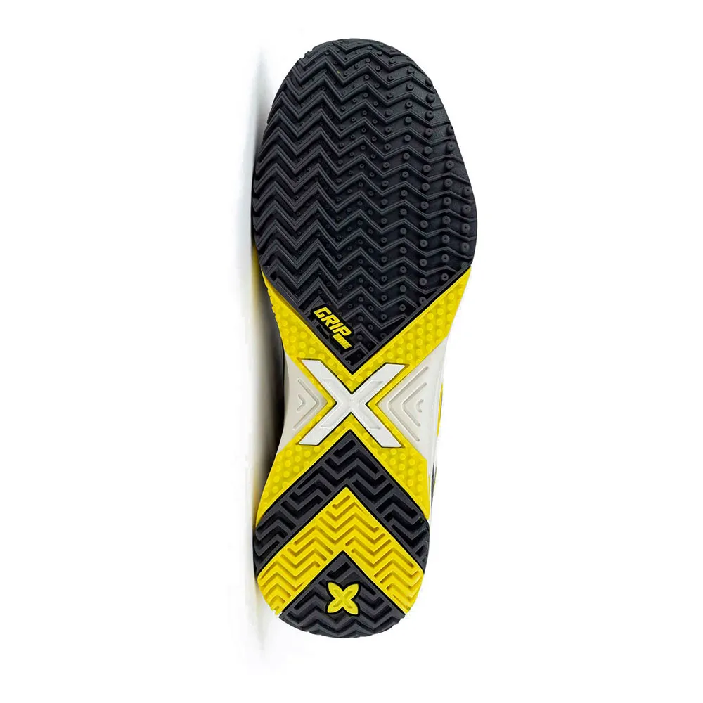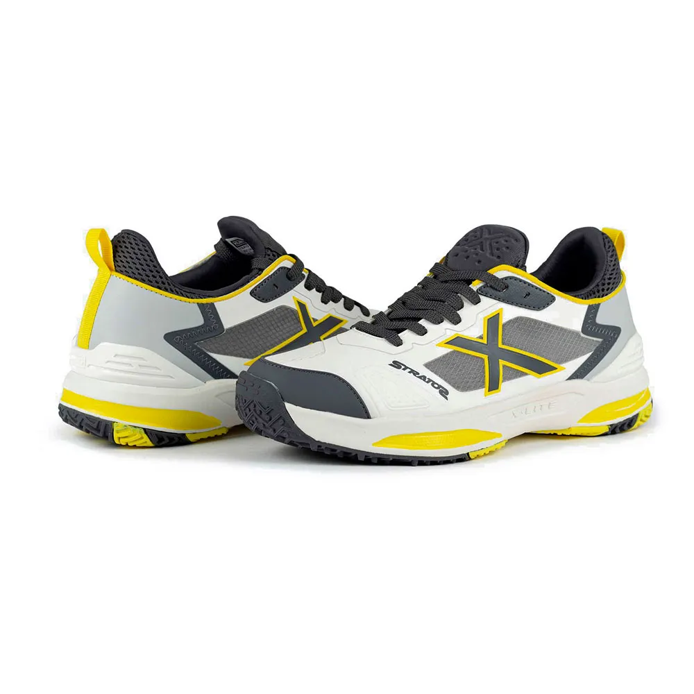 STRATOS er det nye bud, der får dig til at glide over padelbanen uden at føle den mindste træthed. Basen er lavet af mikrofiber med et mesh-område ved tåen for åndbarhed. Tåkappen har gummiforstærkning for at modstå slid fra banen under spil. Hælområdet er adskilt fra mellemfoden og tåområdet af en termo-forseglet PU for at forbedre stivhed og fodstøtte. Skoens konstruktion er sok-lignende for den indre del af foden. Slutresultatet er to forskellige materialer til ydersiden, en strik og et for med ekstra polstring, der giver stabilitet.