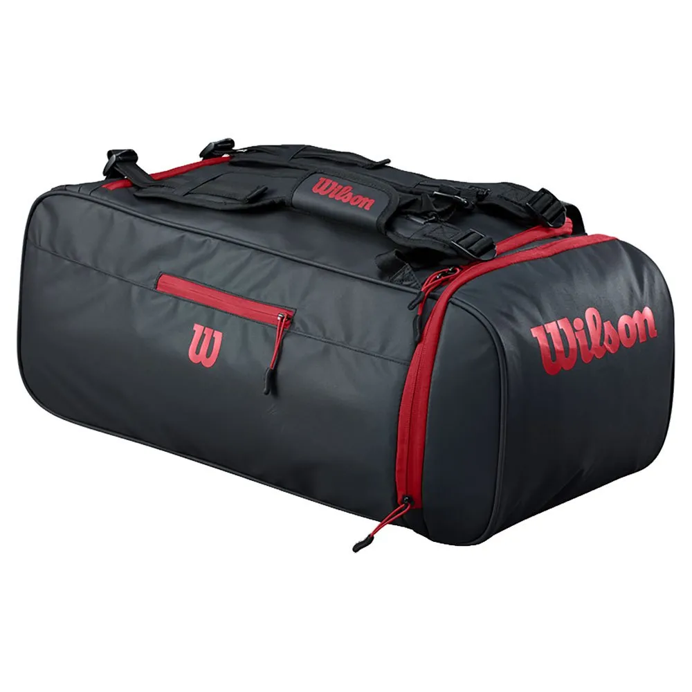 Wilson Duffel er klar, når vejen kalder. Topåbningsklap og justerbare stropper giver dig mulighed for at bære den som en rygsæk eller duffelbag for en nem rejseoplevelse. En Thermo-Guard-lomme til opbevaring af snacks holder dit energiniveau højt, og der er rigelig plads til alt dit spiludstyr. Vær forberedt med Wilson.