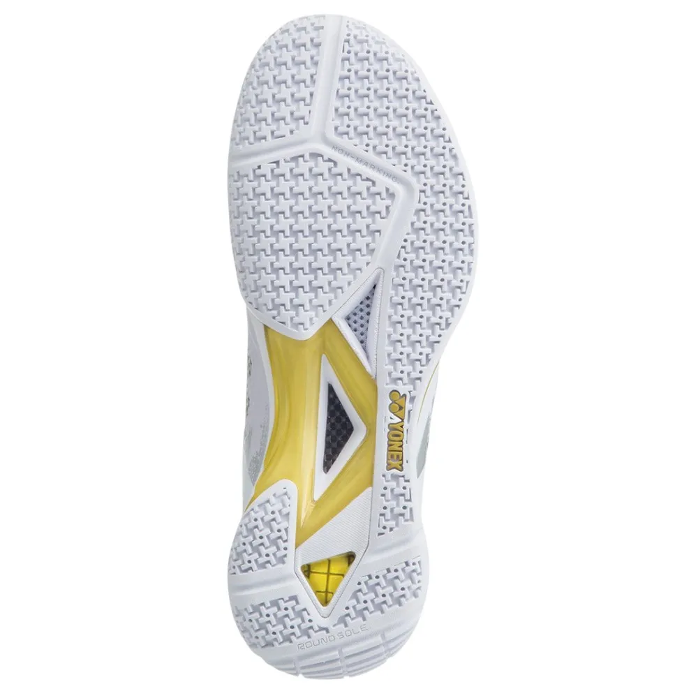 I hjertet af dens komfort ligger det førsteklasses stødabsorberingssystem med YONEX´s revolutionerende POWER CUSHION+ teknologi. Dette avancerede materiale absorberer ikke kun betydeligt mere stød end konventionel stødabsorbering, men besidder også utrolig frastødning. Det omdanner dygtigt slagenergi til momentum, hvilket giver dig et spring i dit skridt for hurtigere reaktioner og jævnere overgange. Dette suppleres af en fjerlet, letvægts mellemsål, der reducerer den samlede skovægt uden at ofre et gram støtte eller komfort, hvilket giver mulighed for vedvarende smidighed gennem lange kampe.