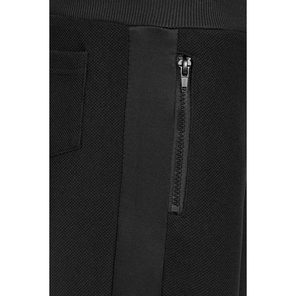 Trainingsanzug bestehend aus einer Jacke mit Reißverschluss und einer Hose. Beide Teile haben ein bedrucktes Logo (3D-Gummidruck) und Reißverschlusstaschen. Die Hose hat außerdem eine Patchtasche auf der Rückseite. An den Seiten befinden sich Stoffeinsätze.