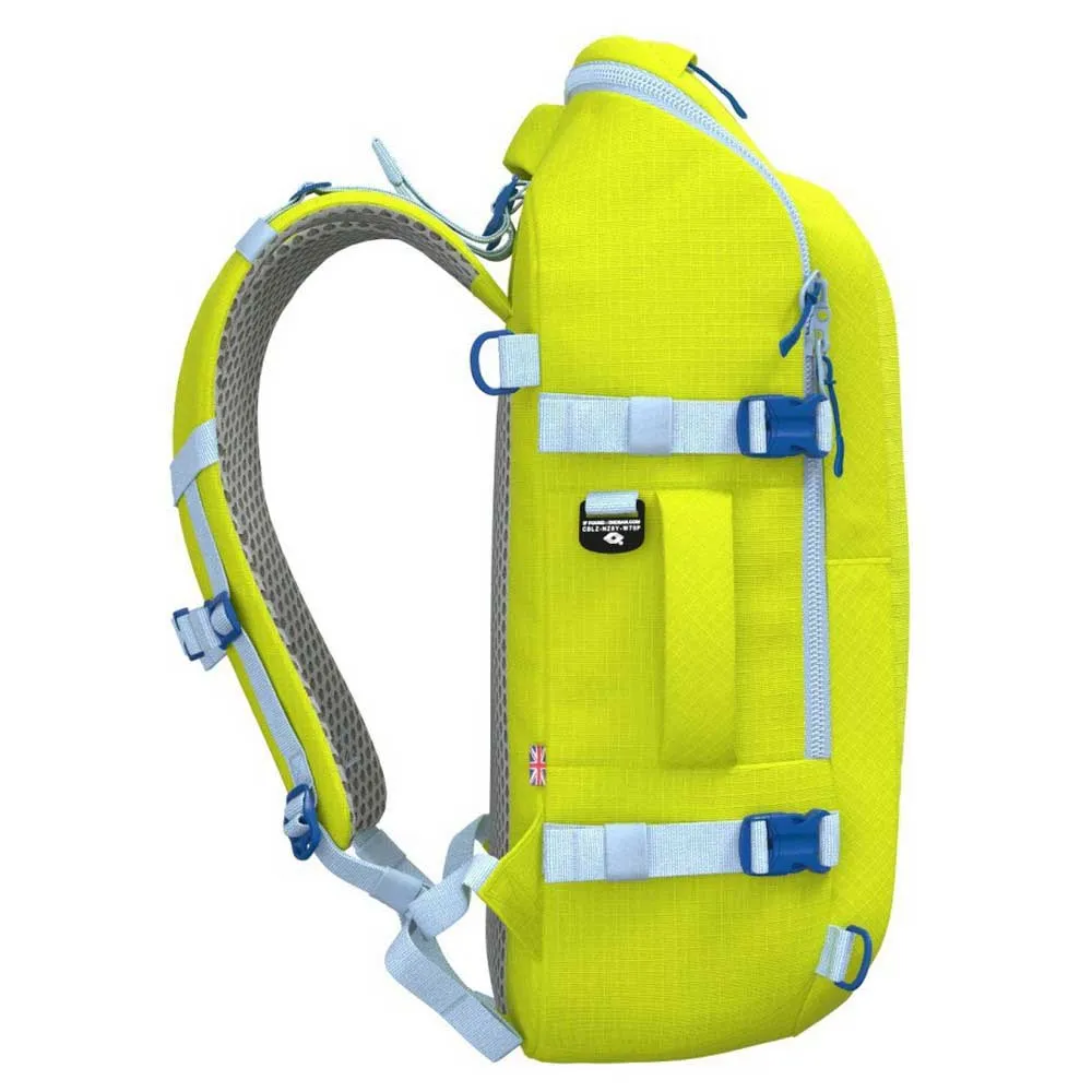Es vereint alle typischen Cabinzero-Taschenmerkmale, darunter eine schnell zugängliche Reißverschlusstasche, ein Hauptfach, das von oben oder von vorne beladen werden kann, einen Wasserflaschenhalter sowie einen verstaubaren Hüft- und Schultergurt.