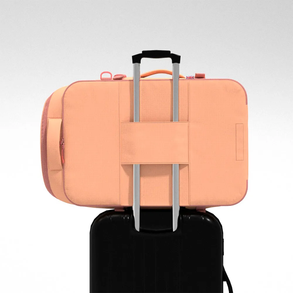 Es kombiniert alle typischen CabinZero-Taschenmerkmale, darunter eine schnell zugängliche Reißverschlusstasche, ein Hauptfach, das von oben oder von vorne beladen werden kann, einen Wasserflaschenhalter und einen verstaubaren Hüftgurt und Schultergurte.