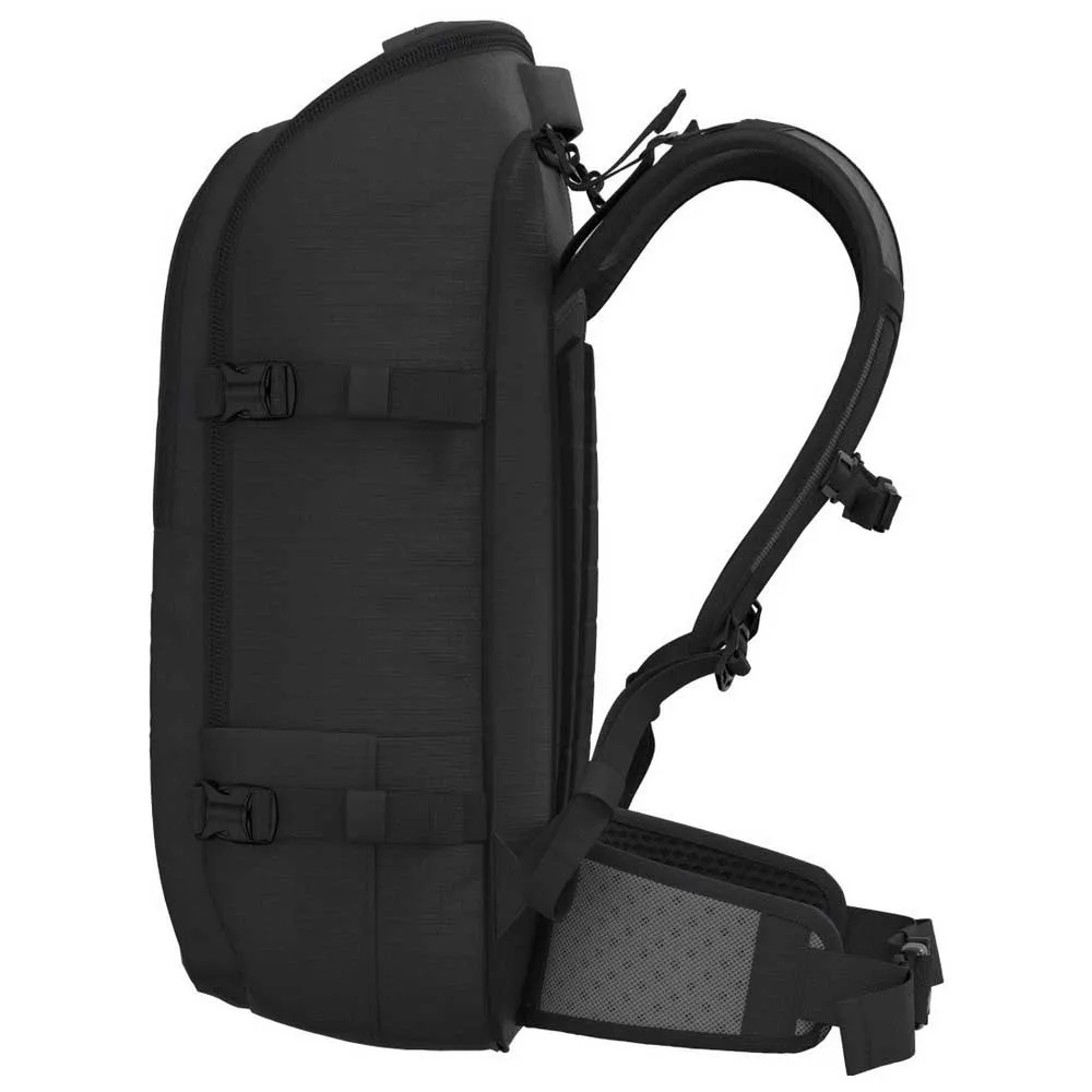 Robust und praktisch, verfügt er über alle typischen Cabinzero-Merkmale, darunter eine schnell zugängliche Reißverschlusstasche, ein Hauptfach, das von oben oder vorne beladen werden kann, einen Wasserflaschenhalter und einen verstaubaren Hüftgurt und Schultergurte.