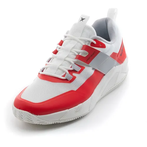 Bringen Sie Ihr Padelspiel mit den neuen Drop Shot Dailos Schuhen auf das nächste Level. Entwickelt für mittel- bis fortgeschrittene Spieler, bietet dieses High-End-Modell außergewöhnliche Stabilität, Haltbarkeit und Komfort. Ein Fersenstabilisator bietet maximalen Halt, während eine Gelkapsel in der Zwischensohle Stöße absorbiert, um Ihre Füße zu schützen. Das hochwertige, atmungsaktive KPU-Mesh-Obermaterial bietet eine flexible, nahtlose Passform, und die rutschfeste Sandplatzsohle sorgt für überragenden Halt bei jeder Bewegung. Dominieren Sie den Platz in einem kühnen, modernen Stil mit seinem auffälligen rot-weißen Design
