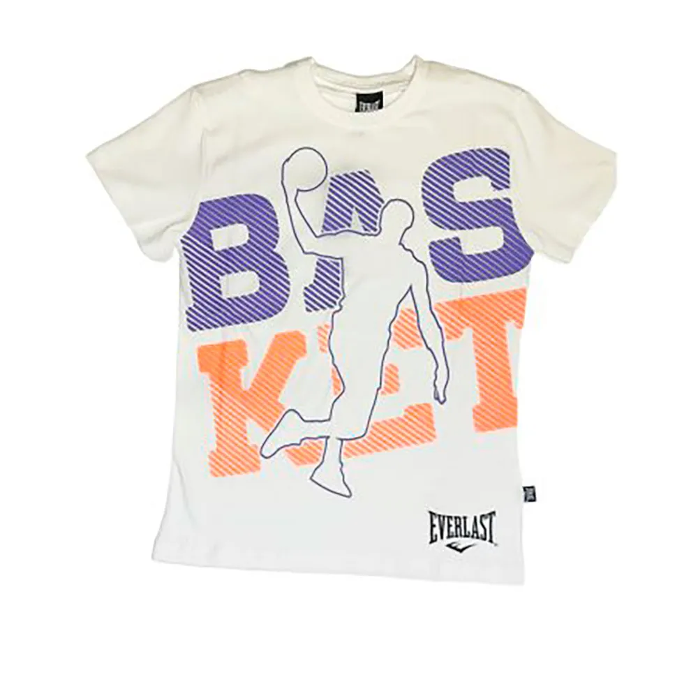 Schlichtes Shorts- und Kurzarm-T-Shirt-Design mit dezenten Everlast-Logos und einem Basketballspieler-T-Shirt-Print mit dem Wort BASKET.
