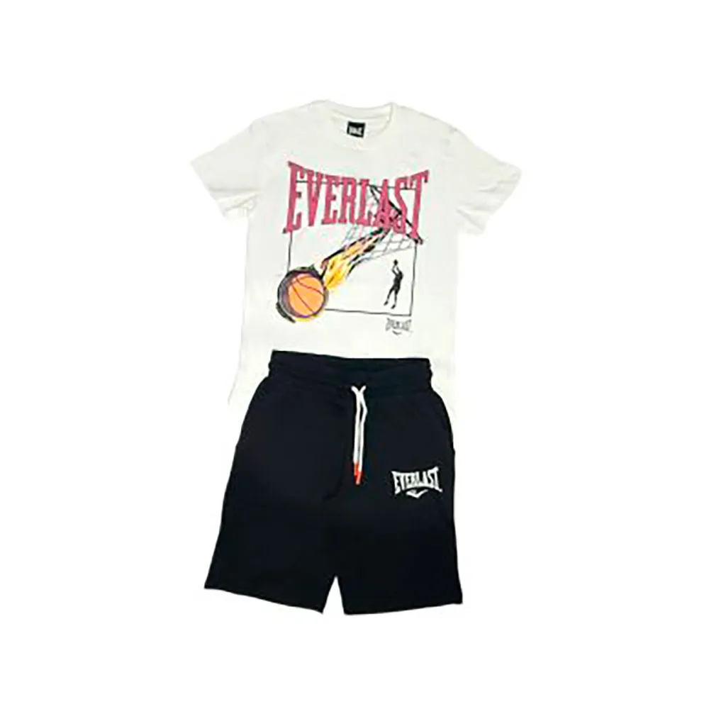 Schlichtes Design aus Shorts und kurzärmeligem T-Shirt in Schwarz mit dezenten Everlast-Logos und einem Basketball-Print.