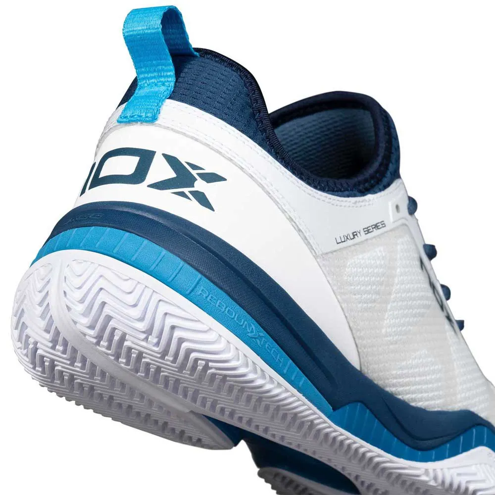 Die NOX Nerbo Padelschuhe in Weiß/Schwedisch Blau wurden speziell für Herren entwickelt, die auf dem Padelplatz auf der Suche nach leistungsstarkem Schuhwerk sind. Diese Schuhe zeichnen sich durch ein schlankes und stilvolles Design mit einer überwiegend weißen Farbe aus, die durch Akzente in leuchtendem Schwedisch Blau für einen mutigen und modernen Look akzentuiert wird.