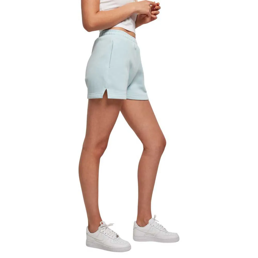 Die unifarbenen Shorts für Damen sind in kurzer Minilänge und mit fein geschlitzten Beinen gestaltet. Ihr breiter elastischer Bund und das eingesetzte gebürstete Fleece-Material machen sie zu sportlichen und bequemen Begleitern und die weite lockere Passform passt einfach perfekt dazu. Die Damenshorts sind außerdem mit zwei Seitentaschen ausgestattet – die linke ist mit einem gestickten Starter-Patch verziert.