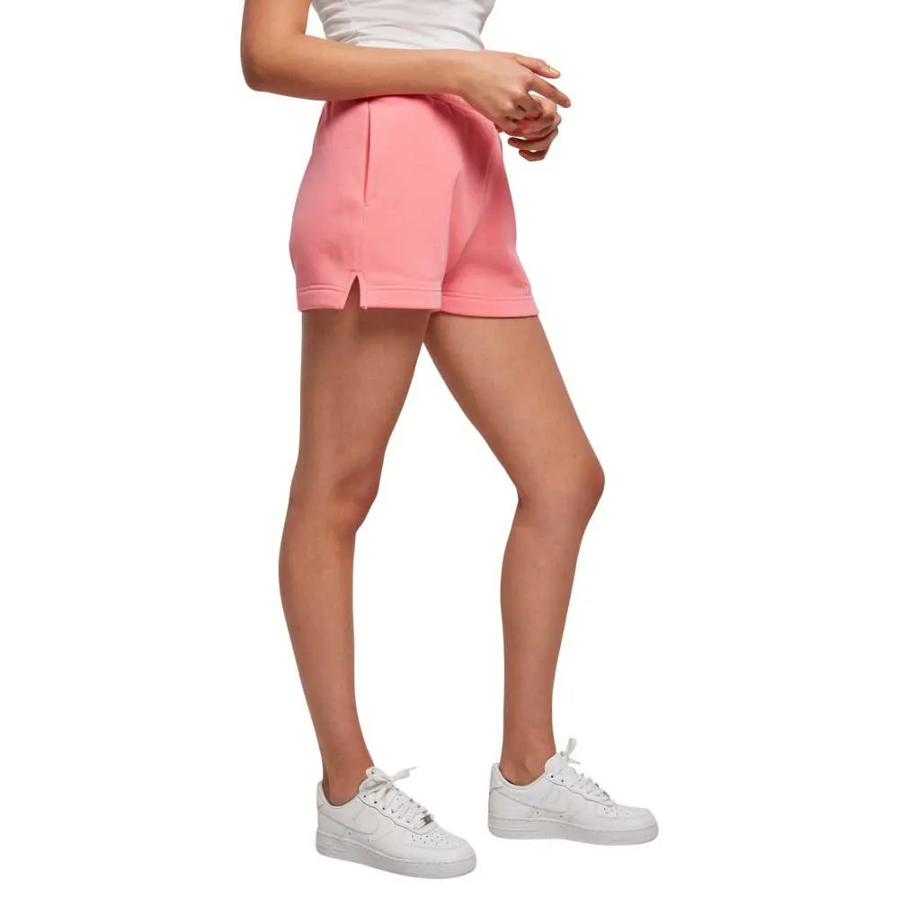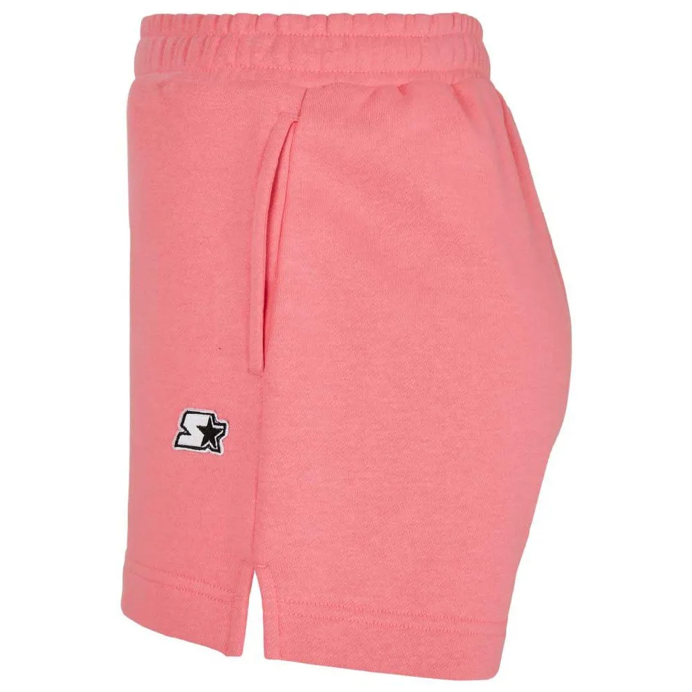 Die unifarbenen Shorts für Damen sind in kurzer Minilänge und mit fein geschlitzten Beinen gestaltet. Ihr breiter elastischer Bund und das eingesetzte gebürstete Fleece-Material machen sie zu sportlichen und bequemen Begleitern und die weite lockere Passform passt einfach perfekt dazu. Die Damenshorts sind außerdem mit zwei Seitentaschen ausgestattet – die linke ist mit einem gestickten Starter-Patch verziert.