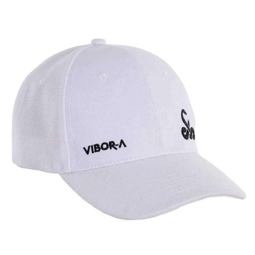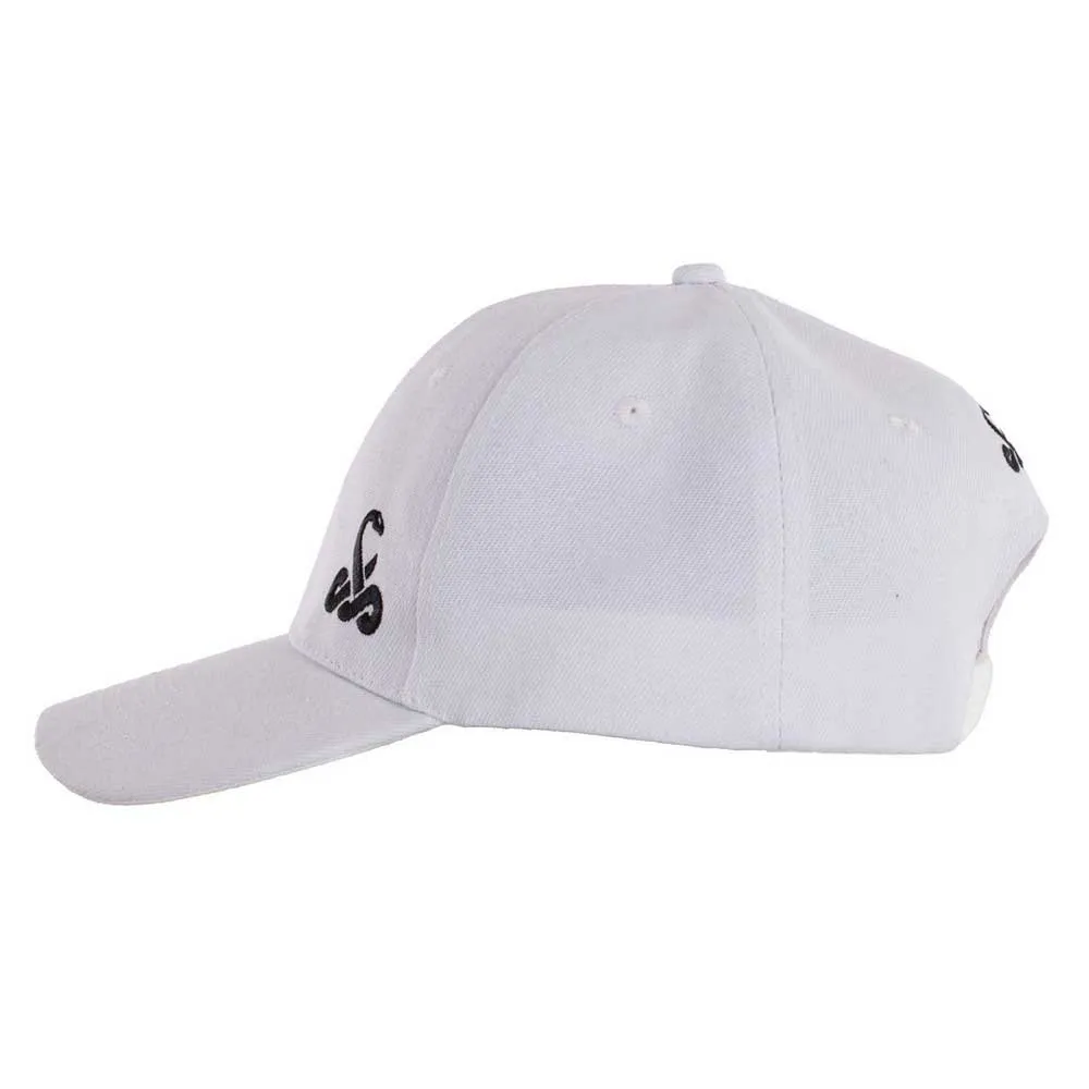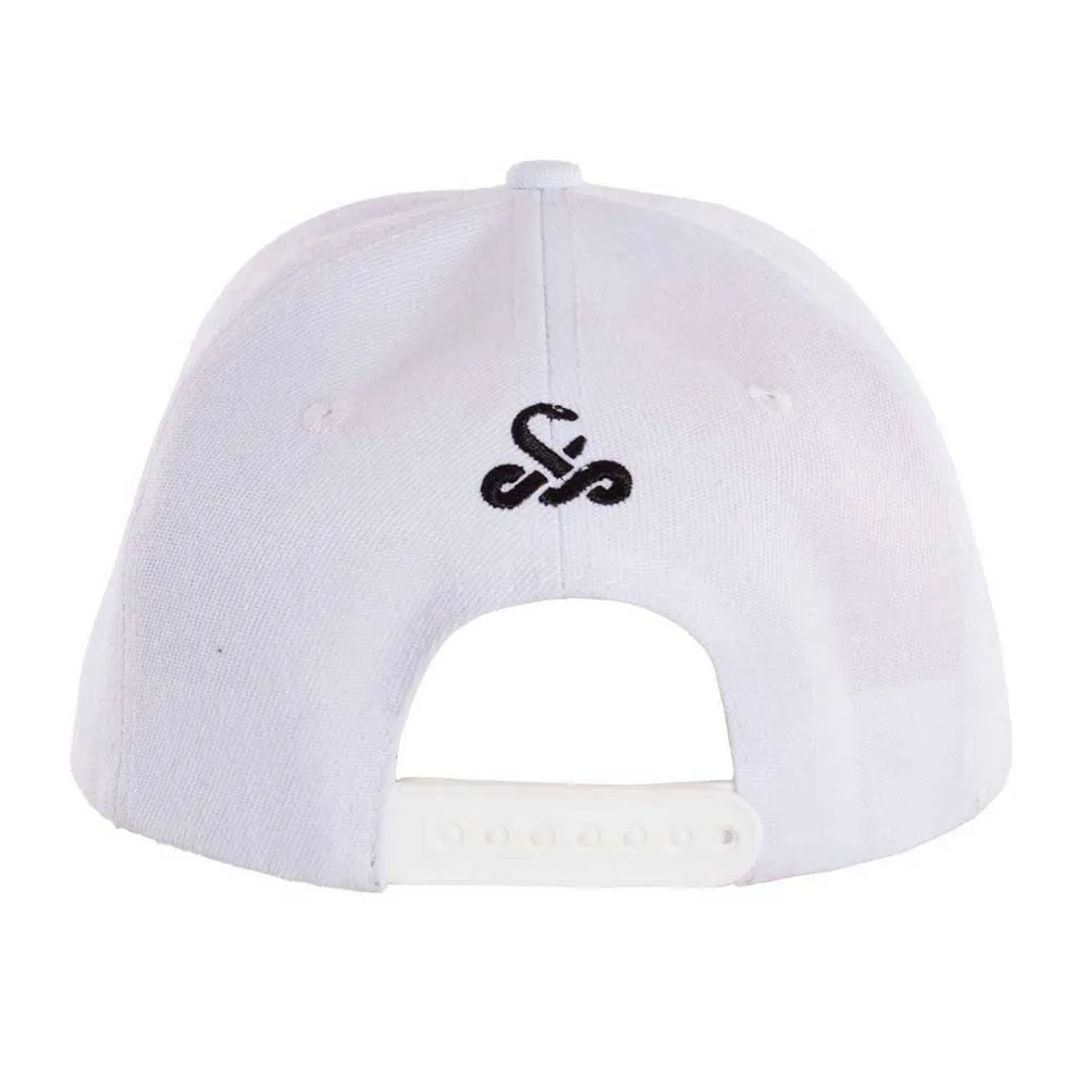 Sportkappe aus Polyester, leicht und bequem. Weißes Design mit schwarzen Stickdetails vorne und hinten auf der Kappe. Verstellbar mit Snapback-Verschluss für mehr Tragekomfort.