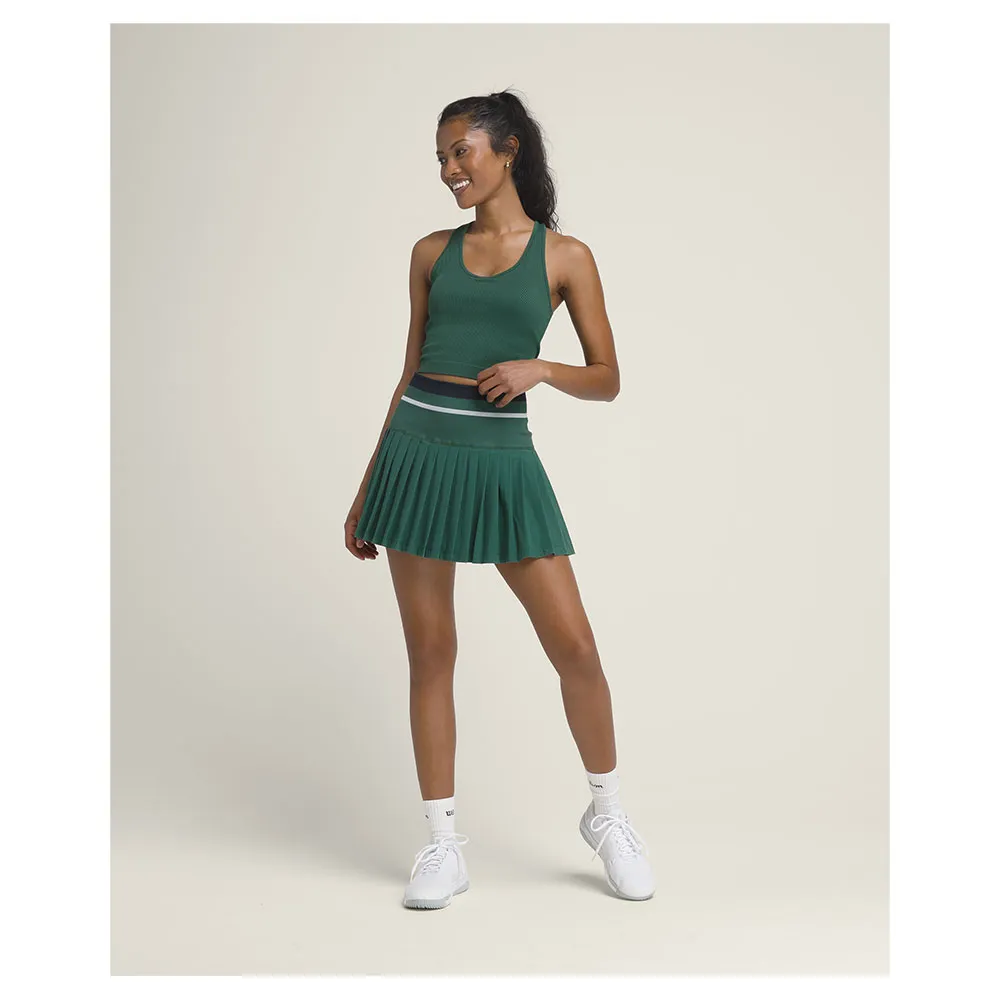 Ein Jahrhundert Tennis hat uns hierher geführt. Wir haben etwas Einfaches genommen und es verbessert. Der Midtown Skirt ist unsere Interpretation des traditionellen Tennisrocks, eine nahtlose Innenhose mit einem plissierten Rock darüber. Tragen Sie ihn zum Tennisspielen oder nutzen Sie ihn auch anderswo dank UV-Schutz, einzigartigem Material und multifunktionalem Design. Die Innenhose, die bis zum Oberschenkel reicht, hat eine Tasche und unser firmeneigener, gestufter Kompressionsbund sorgt für eine perfekte Passform.