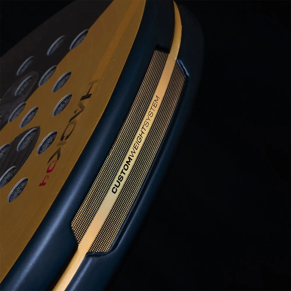The new HACK 04 racket swaps extreme power for dynamic power. We define dynamic power as the power that is generated through the speed of the player’s movement, transforming kinetic energy into powerful and precise impacts. New technologies of this racket include: TOTAL CHANNEL: The aerodynamics of the HACK 04 have been meticulously refined to optimise swing speed with the introduction of a channel around the entire perimeter of the frame with the aim of reducing air resistance to the maximum until the holes of the Air React Channel system are connected together. TRICORE: in this new version of the HACK 04 it undergoes a redesign compared to its predecessor. In its vectors, the size has been increased with the aim of increasing stability and reducing unwanted vibrations, improving the response of the racket in each stroke, making this new version a more stable racket.SMART HOLES: The new hole design in the Hack has been redesigned to achieve a greater sweet spot. A double perforation with a different radius has been created, where the central area requires smaller holes and the outer area requires a larger radius.