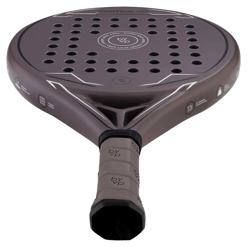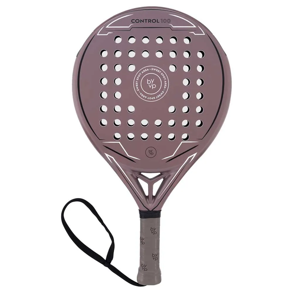 The By-VP Padel Racket Control 100 is a round padel racket with a sleek brown design with black accents. The racket has a carbon frame with a fiberglass core in it. The padel racket shape of the By-VP racket is a classic round shape. This means that the balance point of this type of padel racket is in the middle of the racket. As a result, the sweet spot is larger, making it easier to hit the ball well. This also gives you more control over the ball.