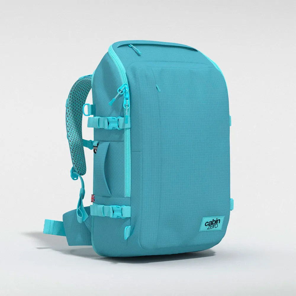 It combines all the trademark CabinZero bag features, including a quick-access zip pocket, a main compartment that can be loaded from the top or the front, a water bottle holder and a stow-away waist belt and shoulder straps.