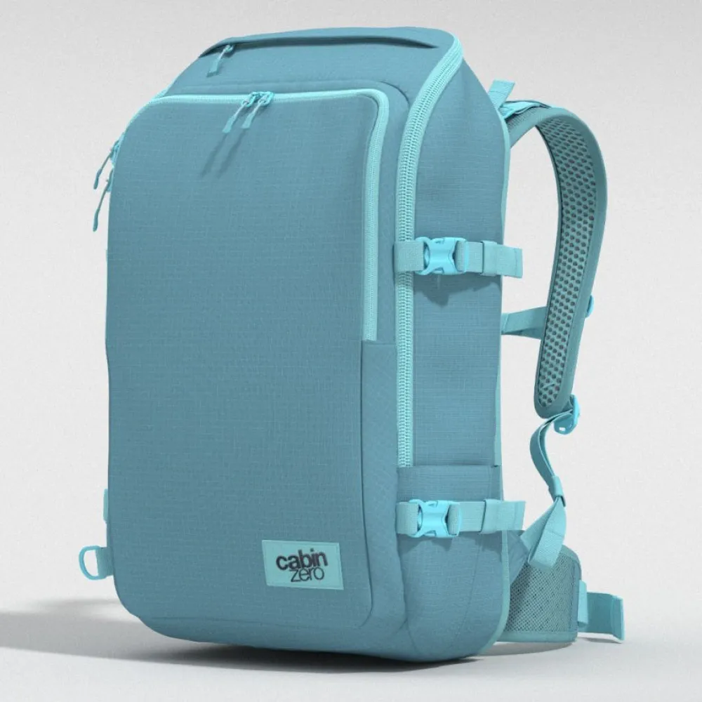 Rugged and practical, it has all the trademark CABINZERO features, including a quick-access zip pocket, a main compartment that can be loaded from the top or the front, a water bottle holder and a stow-away waist belt and shoulder straps.