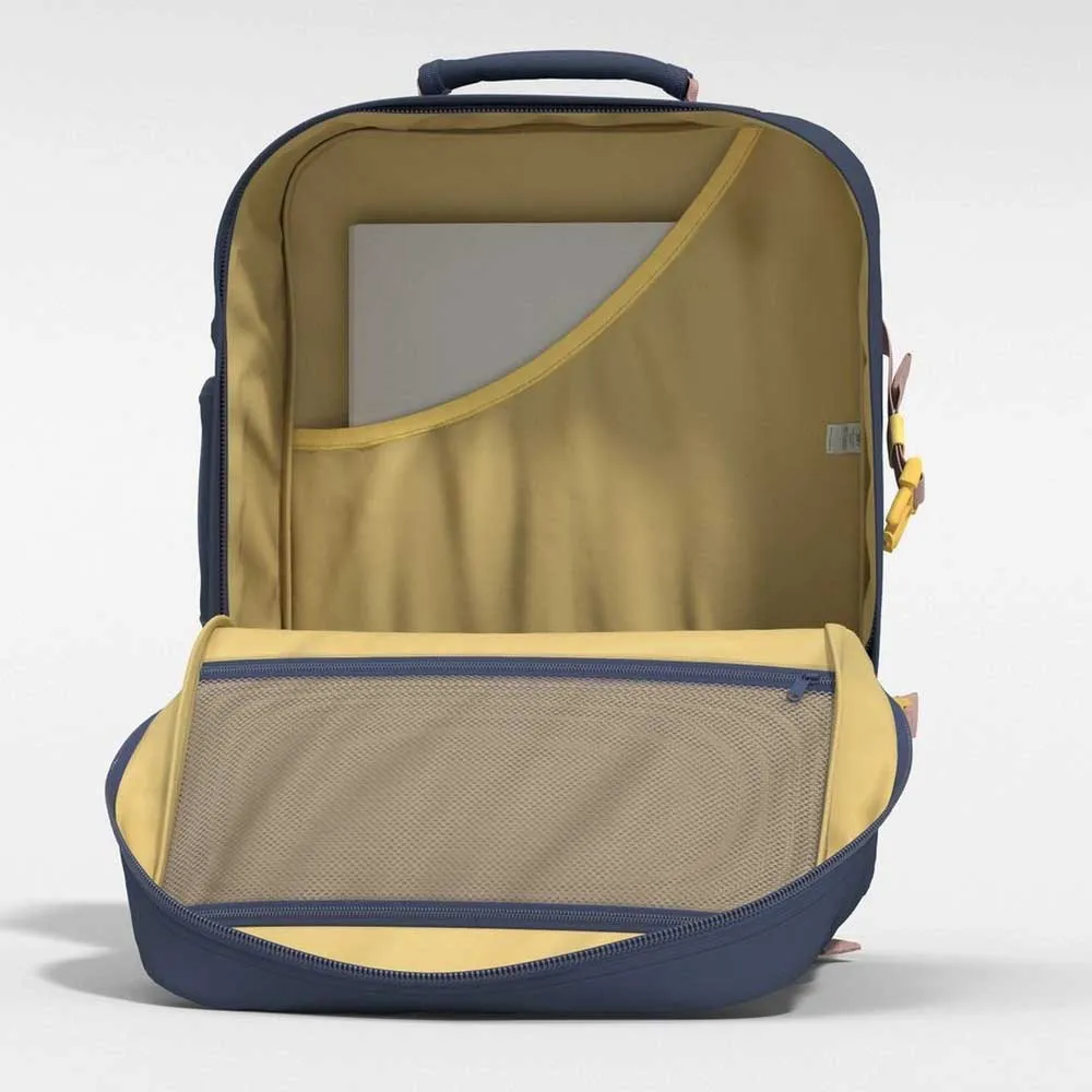 Be amazed at how much you can pack without ever feeling weighed down. The CabinZero Classic cabin bag in Macaron Pink holds everything you need (and then some). Weighs under 800g, and stays under 1.5kg even with two full packing cube sets.