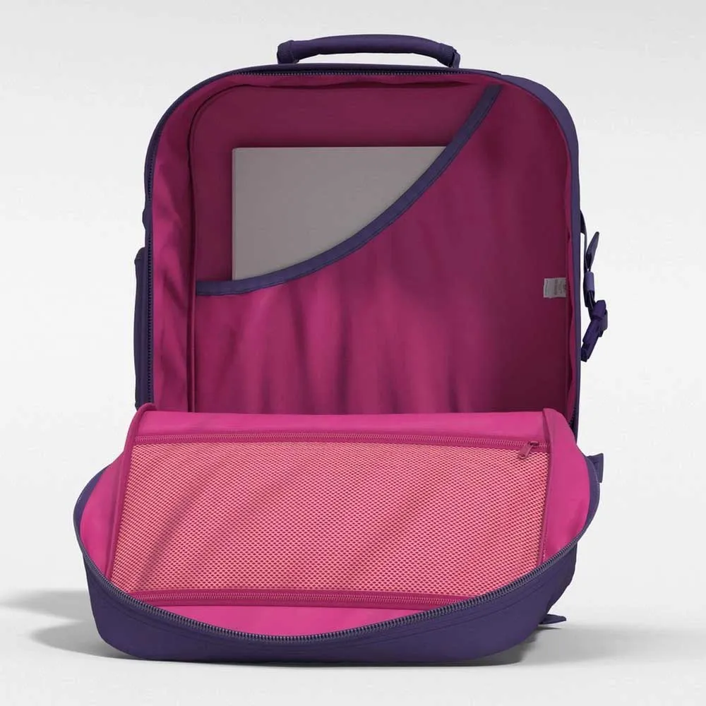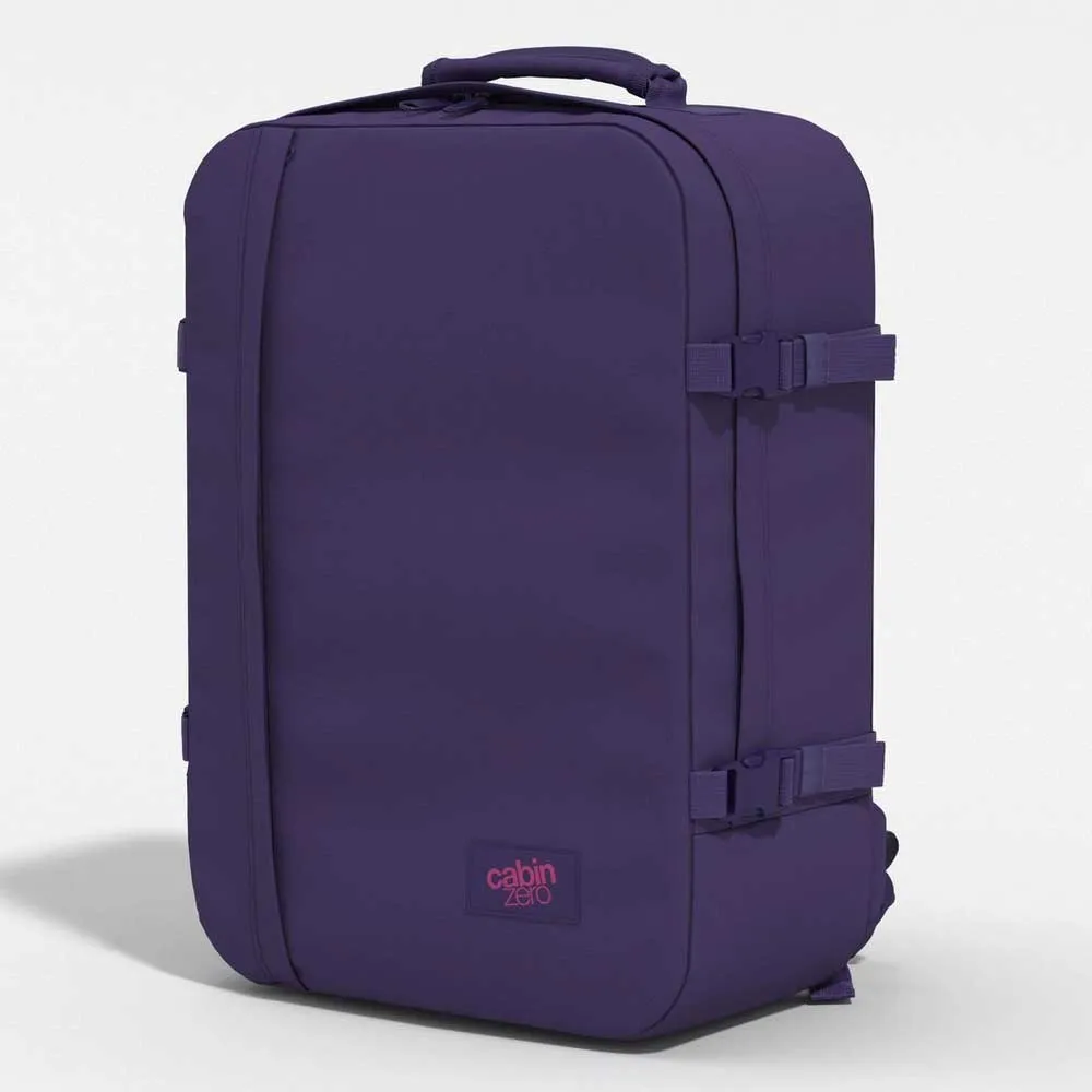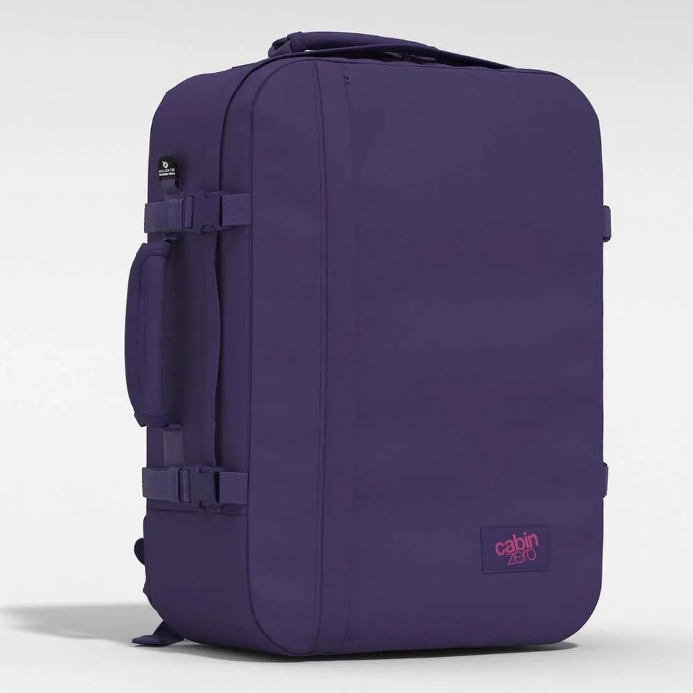 Be amazed at how much you can pack without ever feeling weighed down. The CabinZero Classic cabin bag in Macaron Pink holds everything you need (and then some). Weighs under 800g, and stays under 1.5kg even with two full packing cube sets.