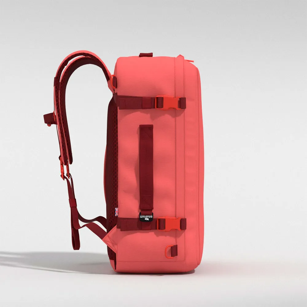 The Classic Plus has a front loading main compartment, a quick-access front panel zip pocket, an enhanced air-mesh back panel, chest and waist straps, a water bottle holder and a telescopic handle sleeve on rear panel.