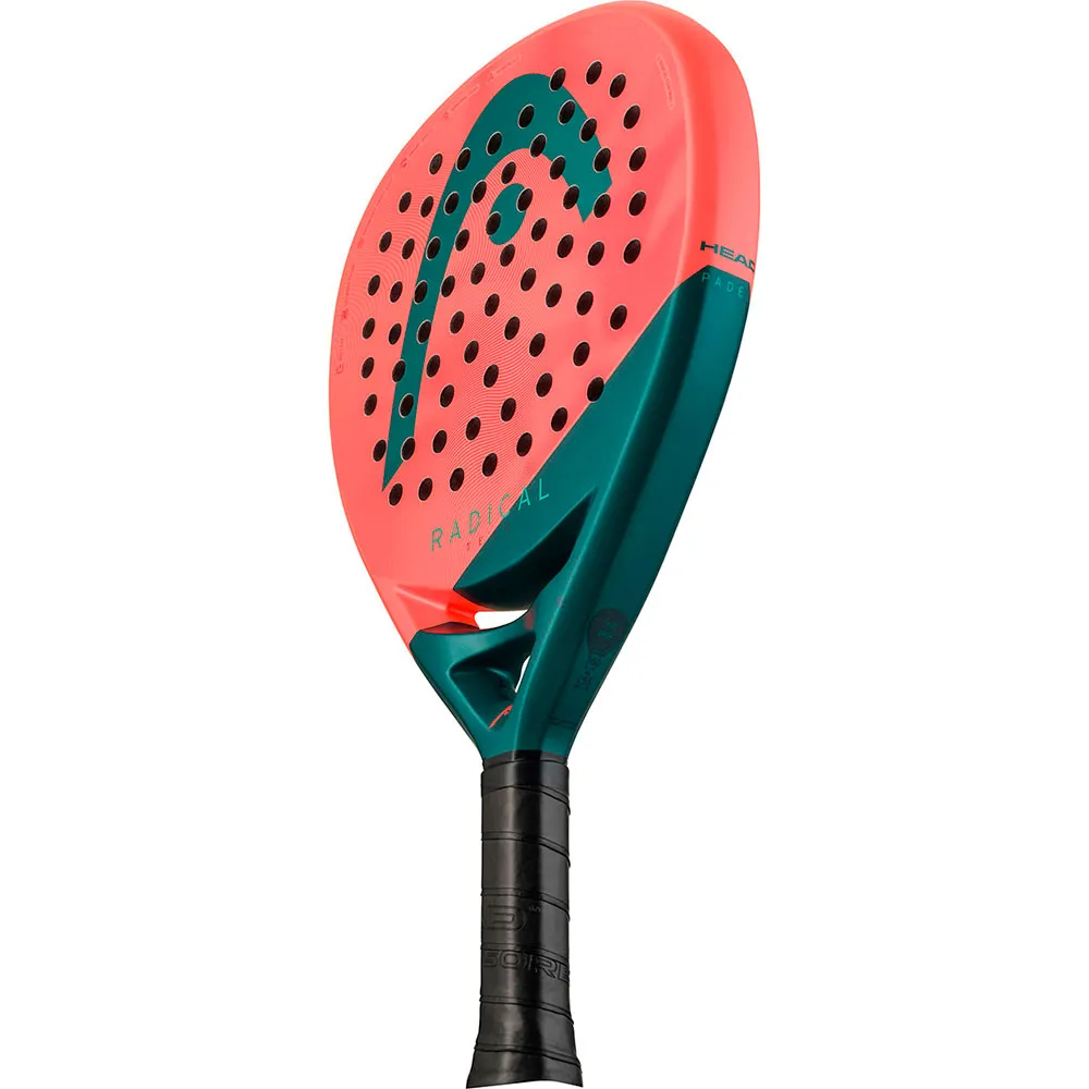 The RADICAL ELITE PADEL RACKET, manufactured with a new mold, is part of a new teardrop-shaped series and offers intermediate and advanced players radical control. Its reduced weight and low balance contribute to greater control in the game, while the carbon fiber on the hitting surface provides a soft touch for a greater sense of comfort and controlled power. The innovative Auxetic technology provides superior power and an exceptional impact feel, and to top it all off, the soft cap technology at the base of the handle provides greater comfort and reduces vibrations. Its radical control is combined with an exclusive color design that turns heads on any court.