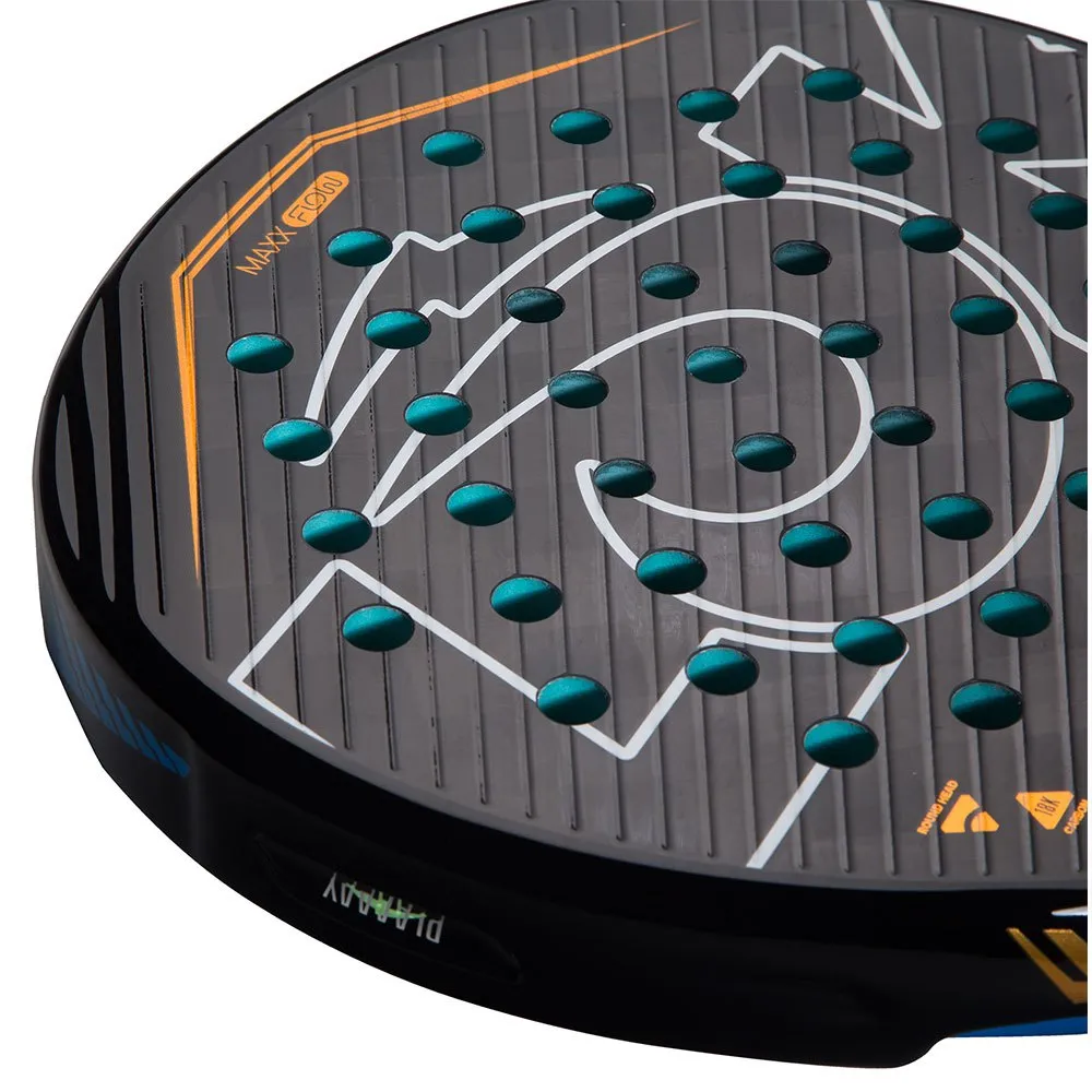 The Maxx Flow is designed with a medium balance, providing a perfect equilibrium between power and maneuverability. It includes Carbon Reinforcements - carbon reinforcements - that support the durability of the racket´s structure and a Dynamic Holes System with a progressive arrangement of holes of different sizes that enhance the power of the stroke.It also features the Confort Wristband system, which is an adjustable wristband.