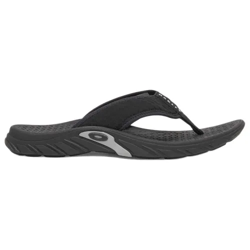 These flip flops are made from dual-density EVA which both cushions and supports the foot to maximize comfort. The product features a breathable, waterproof Lycra strap designed to accommodate a wider range of foot shapes, and a PU rubber outsole for excellent grip. The tread is engineered with grooves that channel water away from pressure zones for enhanced traction. A bold Oakley Ellipse logo appears on the tread and is repeated on the side, recalling the iconic eyewear temple.