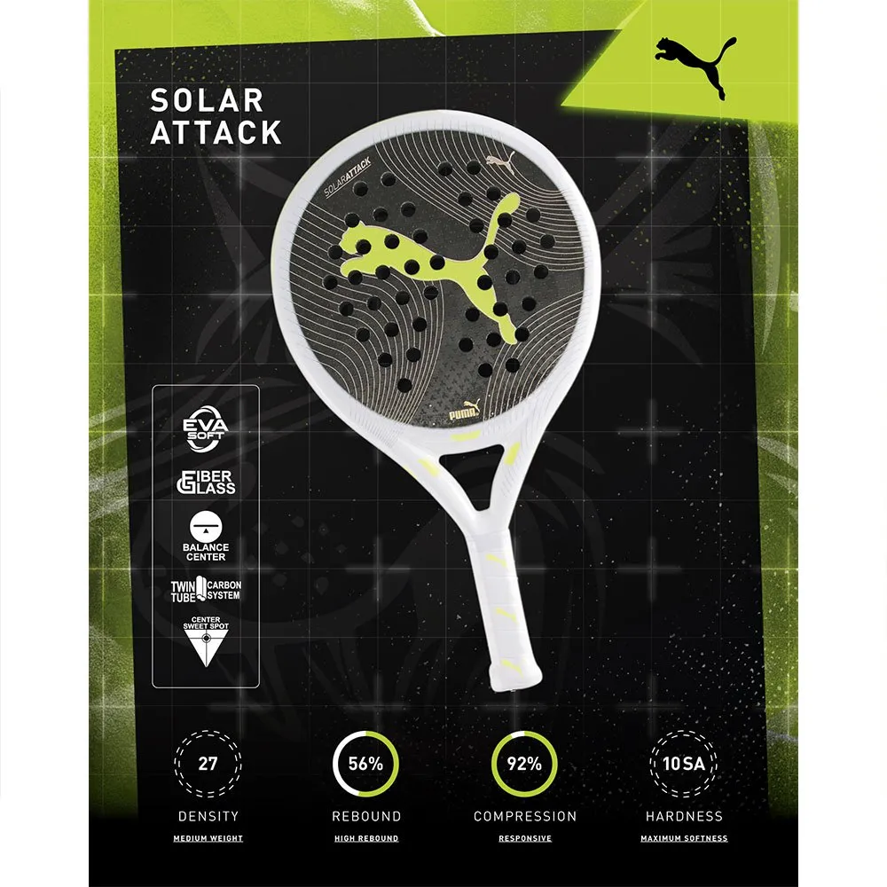 The PUMA Solarattack Control Padel Racket in Puma White and Yellow Alert is the perfect choice for padel players who want to take their game to the next level. This high-quality racket is designed to provide exceptional control and power, making it easy to dominate on the court. The PUMA Solarattack Control Padel Racket features an innovative design that maximizes energy transfer, ensuring that every shot packs a punch. Its lightweight construction makes it easy to maneuver, allowing players to respond quickly to their opponent's shots. Whether you're a beginner or an experienced player, the PUMA Solarattack Control Padel Racket is a must-have for any serious padel enthusiast. Order yours today and experience the power and control that PUMA is known for in the world of padel.