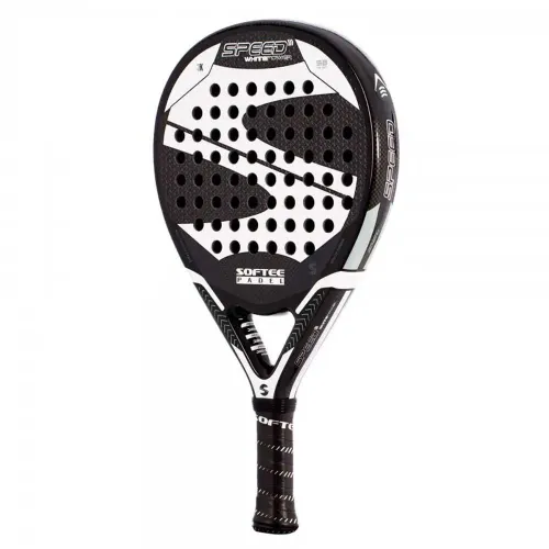 Master the court with the SOFTEE Speed padel racket, engineered for the advanced, all-around player. Its teardrop shape and medium balance offer a sublime fusion of explosive power and pinpoint control. The 3k Carbon faces provide a firm, responsive feel for decisive shots, while the Soft S8 EVA core ensures comfort and a fast ball exit. A unique glossy-rough 3D finish grips the ball, allowing you to generate massive spin and dominate every point. This is your high-performance instrument for victory