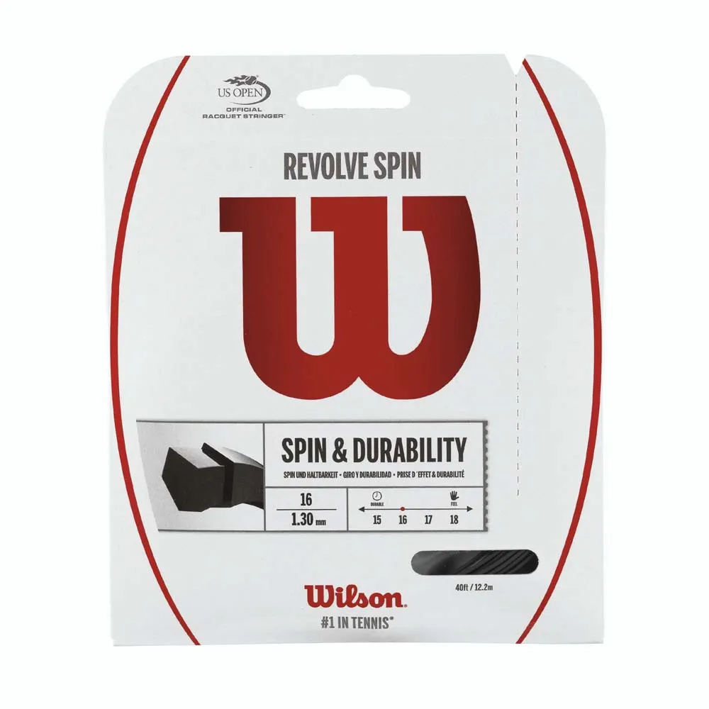 Transform your game with the WILSON Revolve Spin 12.2 mm tennis string. Order yours today and experience the difference!