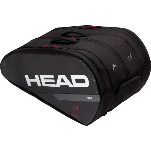 Con un estilo elegante y único, propio del ‘Rey Arturo’, esta bolsa forma parte de su colección y se ha diseñada junto al número 1 del mundo. El logo plateado de HEAD aporta contraste y estilo, destacando sobre el negro, mientras que el interior en rojo, uno de los colores favoritos de Coello, añade un toque personal. Las coronas en las tiras refuerzan ese aspecto premium y distintivo que encantará a sus seguidores.