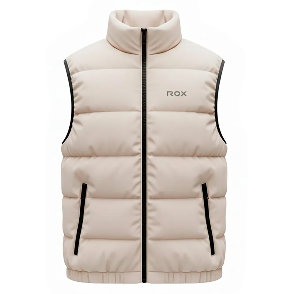 Chaleco impermeable diseñado con cuello chimenea y cremallera frontal. Es la prenda perfecta para días de frío moderado. Tiene dos bolsillos laterales con cremalleras. Acolchado para mayor comodidad. El corte permite total libertad de movimiento.
