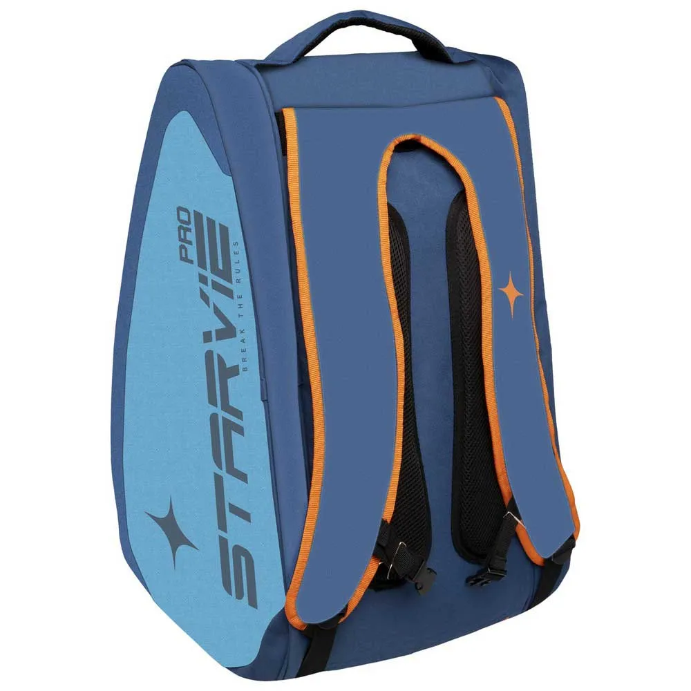 Pensado para quienes buscan organización y comodidad en cada partido, el paletero de pádel STARVIE Pro Master ofrece una excelente capacidad de almacenamiento y un diseño deportivo en tonos azul con detalles en naranja.
