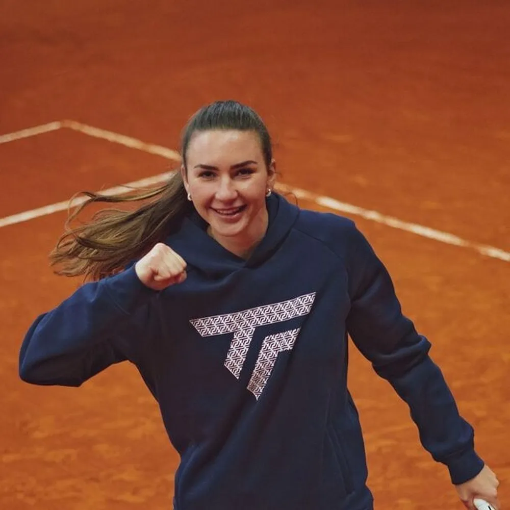 Su estilo es a la vez clásico y moderno: gráficos llamativos inspirados en el logo de Tecnifibre, manteniendo la elegancia al usar solo azul marino y blanco.