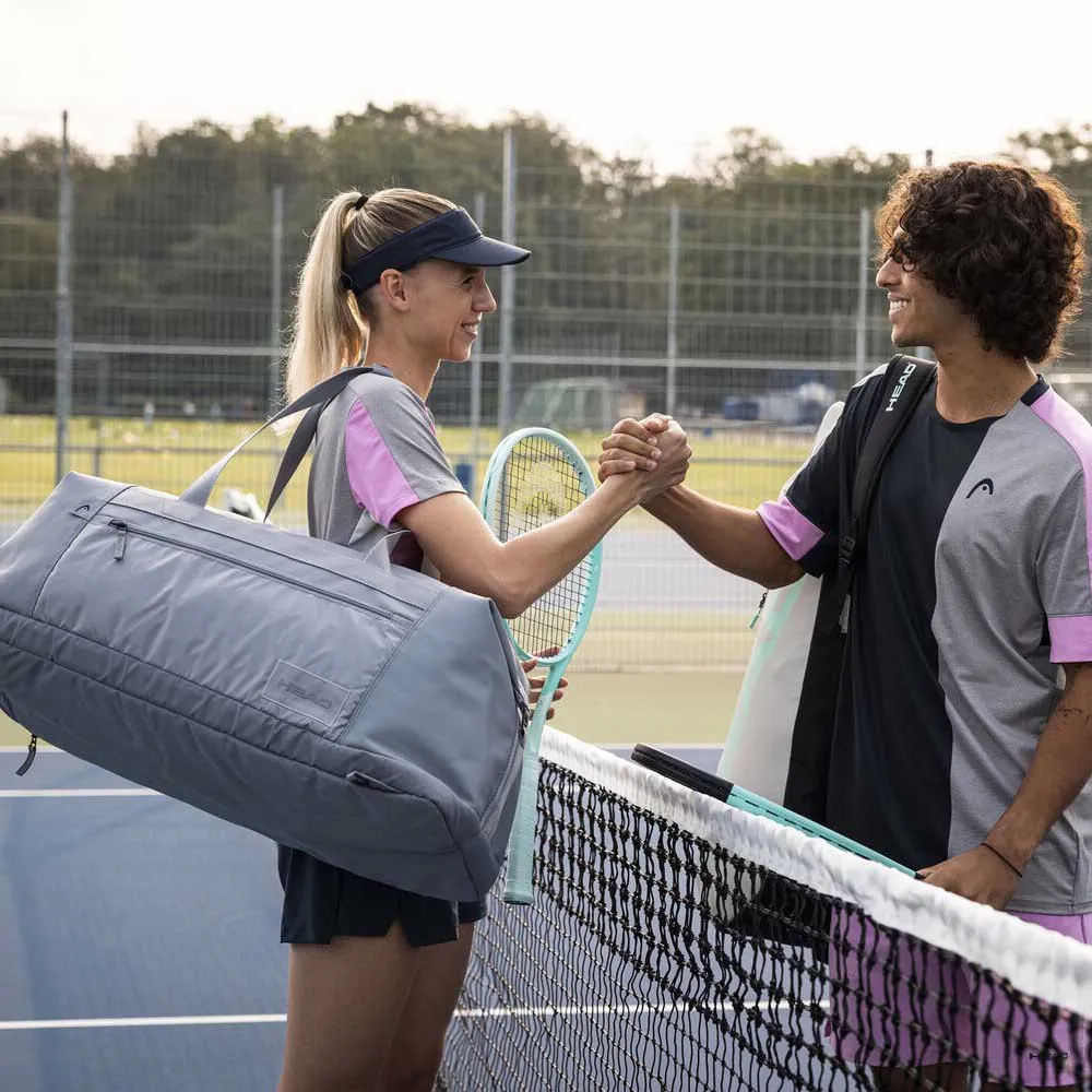 HEAD RACKET Tour L Duffle Bag KG on tilava ja kestävä laukku, joka on suunniteltu kuljettamaan kaikki tennisvarusteesi tyylikkäästi. Laadukkaista materiaaleista valmistettu laukku sisältää suuren päälokeron, johon mahtuu useita mailoja, kenkiä ja vaatteita. Siinä on myös erilaisia lisävarustetaskuja pienempien tavaroiden, kuten pallojen, grippien ja vesipullojen säilyttämiseen.