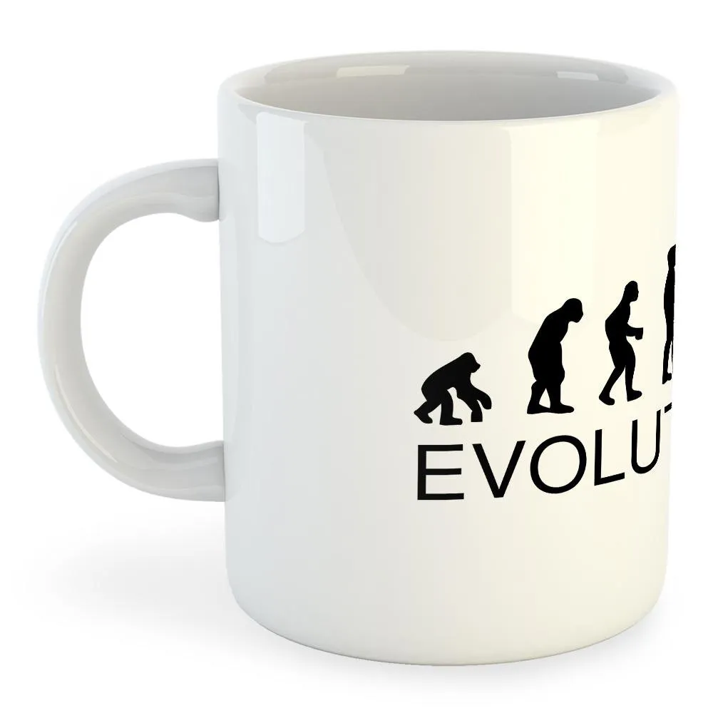 Valkoinen keraamimuki, jossa on ainutlaatuinen ja hauska muotoilu.
