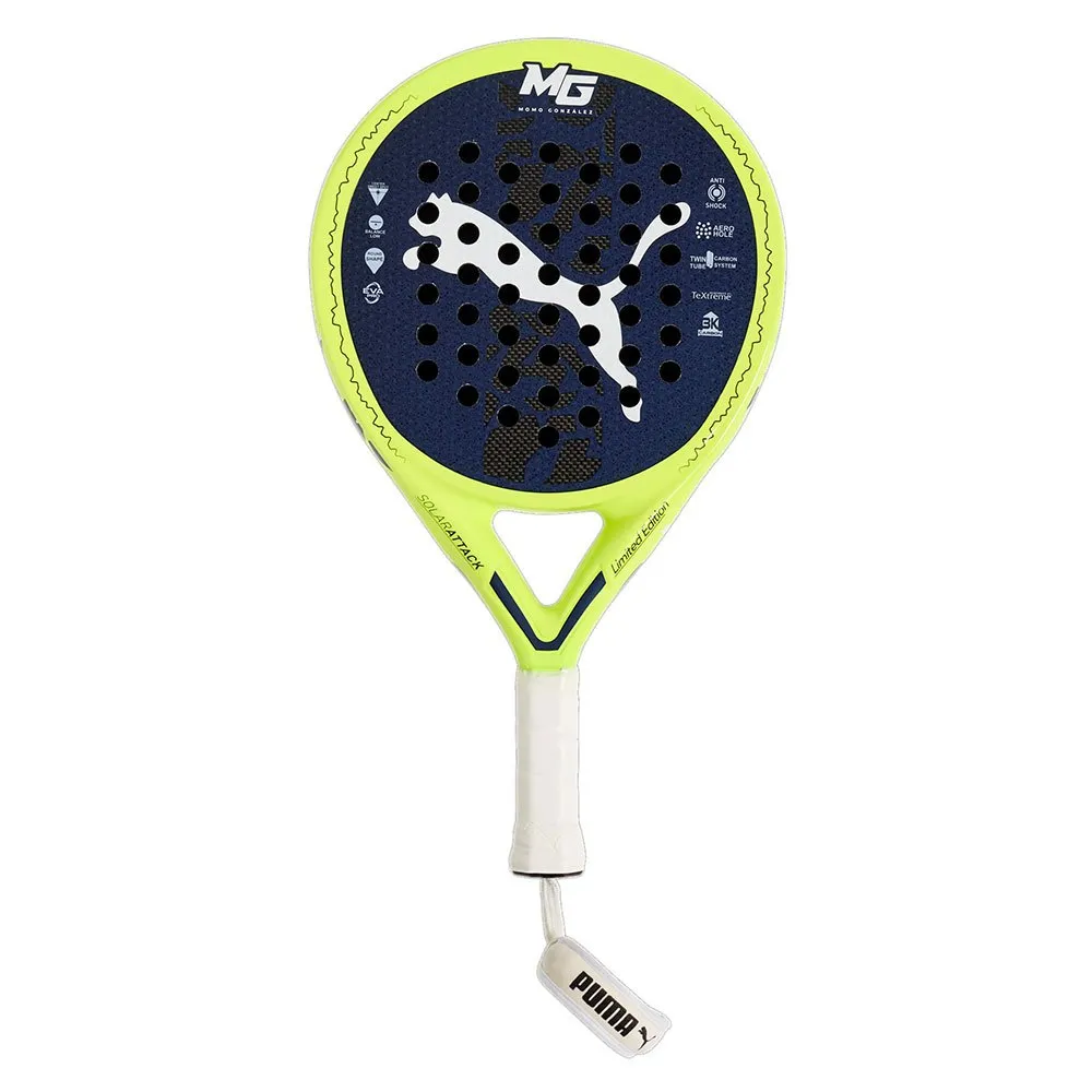 SolarATTACK on PUMA:n teknologisinta sulkarata, joka on suunniteltu ammattilaisille ja edistyneille padel-pelaajille. Rattaassa on 3k hiilikuiturunko ja kaksinkertainen putkirimma, sekä sisäpuolella kova vaahtomuovi, joka on kovempi kuin edeltäjänsä parantaakseen vastetta. Heidän ulkoasunsa mukaan ne ovat ´Made in Spain´ -tuotteita, joissa on pelaajien logo ja nimikirjaimet. SolarATTACK Momo -rattaassa on pyöreämuotoinen muoto, joka parantaa lyöntivastetta ja erottuva värimaailma: PUMA White, PUMA Navy, Fast Yellow ja PUMA Black. Momon logon ja nimikirjaimien kanssa tämä rata on täydellinen faneille.