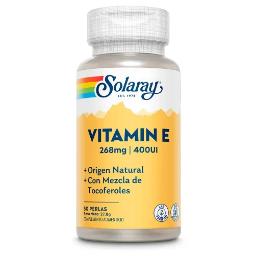 Tehosta yleistä hyvinvointiasi SOLARAY E-vitamiinilla 400 IU (50 pehmeää kapselia). Tämä tehokas antioksidanttilisä tukee solujen terveyttä, suojaa vapaiden radikaalien vaurioilta ja edistää terveen ihon, näön ja immuunijärjestelmän toimintaa. Kokeile korkealaatuisen E-vitamiinilisän eroa, joka on suunniteltu optimaalista imeytymistä ja hyötyosuutta varten.
