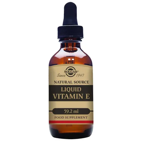 - Solgar® Natural Source Liquid Vitamin E - 59.2 ml, on nestemäisessä muodossa tukemaan tämän rasvaliukoisen ravintoaineen imeytymistä ja sisältää suositellun päivittäisen E-vitamiinin saannin vain 5 tipassa päivässä.