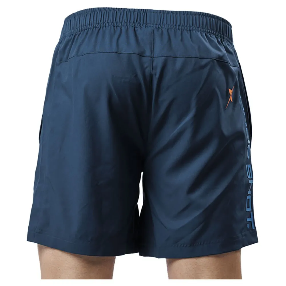 Le vêtement est conçu en bleu marine et prend du caractère avec l'impression 3D du logo de la marque en orange et du nom Drop Shot contrastant avec les tons bleus.