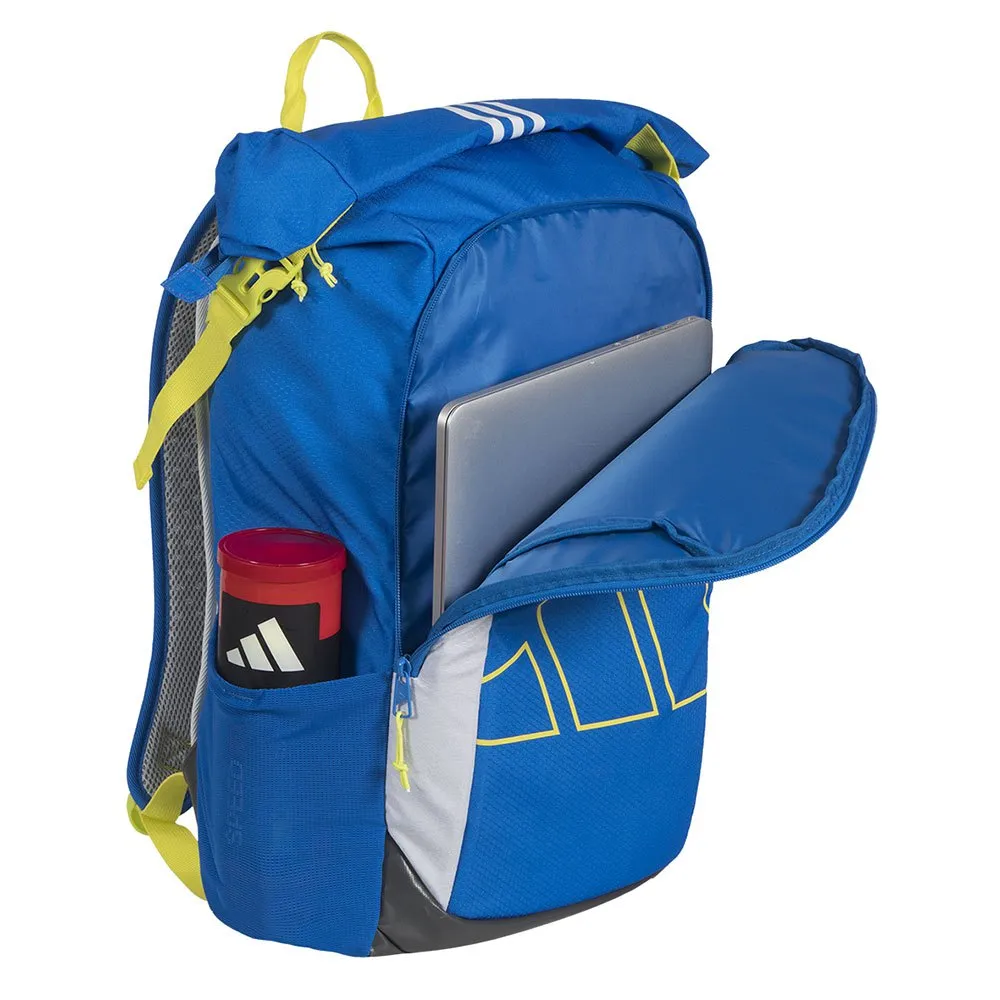 - Un vano principale con volume regolabile grazie all´apertura ´Rolltop´. All´interno di questo vano, troverai una piccola tasca per i tuoi oggetti delicati e un divisorio per riporre il tuo laptop o la racchetta