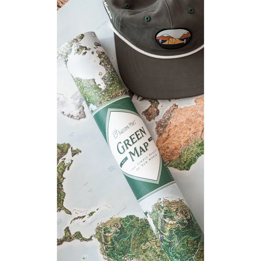 La Green Map è semplicemente questo. Una mappa verde che mostra la straordinaria natura della roccia che tutti chiamiamo casa. Nessuna struttura creata dall'uomo per togliere la bellezza delle nostre meraviglie naturali. Questa mappa è una miscela unica di precisione geografica e illustrazioni fatte a mano. Ogni elemento su questa mappa, ogni albero, roccia, lago, ecc. è stato considerato con attenzione e scopri qualcosa di nuovo ogni volta che guardi la mappa. Per gli anni a venire la Green Map stimolerà la tua curiosità, immaginazione e voglia di viaggiare.