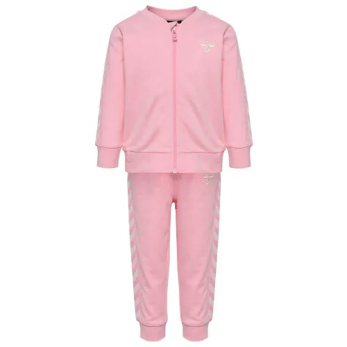 Questa tuta Hummel® è composta da una giacca con zip integrale con colletto sportivo corto e un paio di pantaloni della tuta con vita regolabile.
